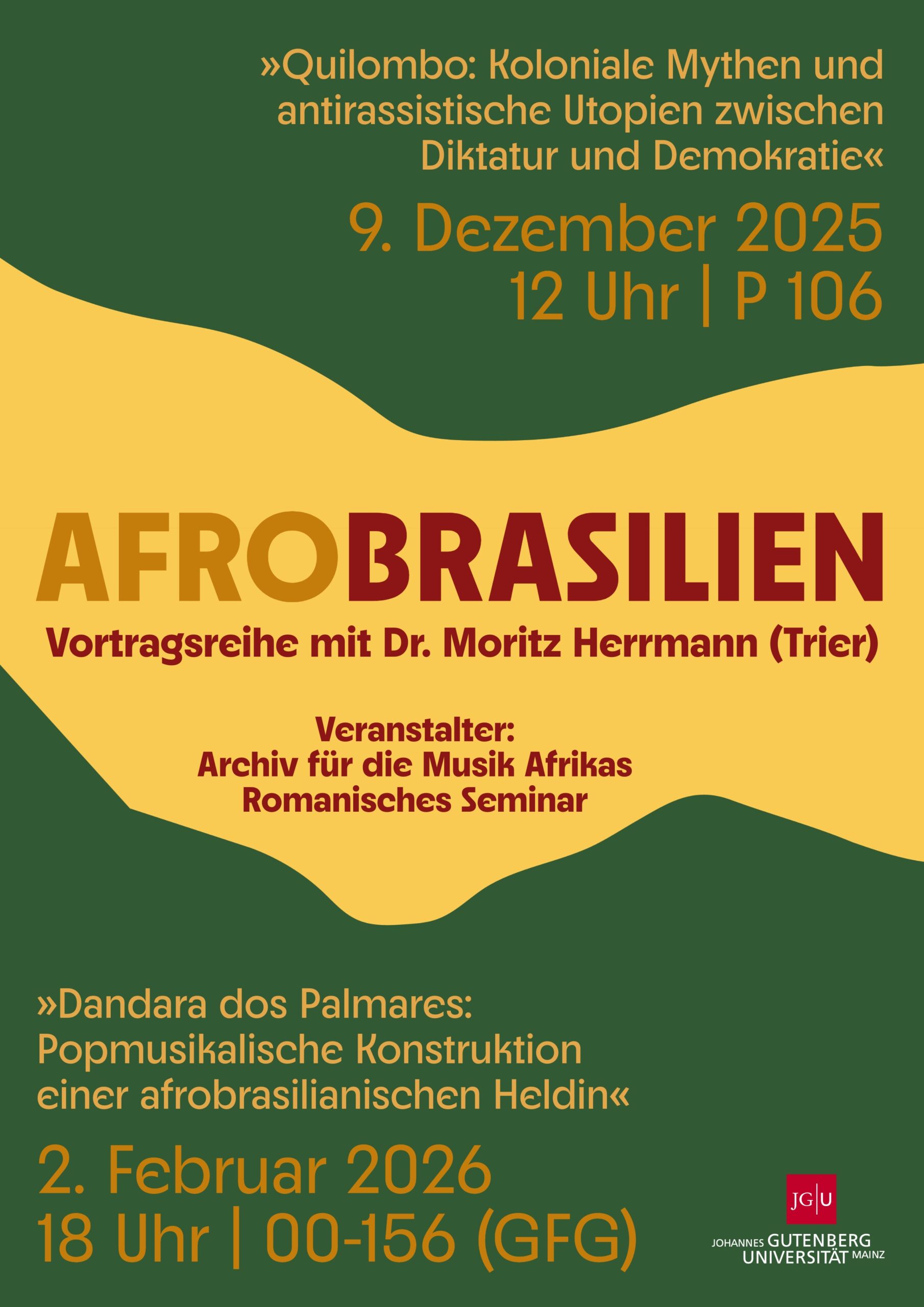 - Vortragsreihe Afrobrasilien am 9. Dezember 2025 und am 2. Februar 2026 mit Dr. Moritz Herrmann (Trier) in Kooperation mit dem Archiv Musik Afrikas