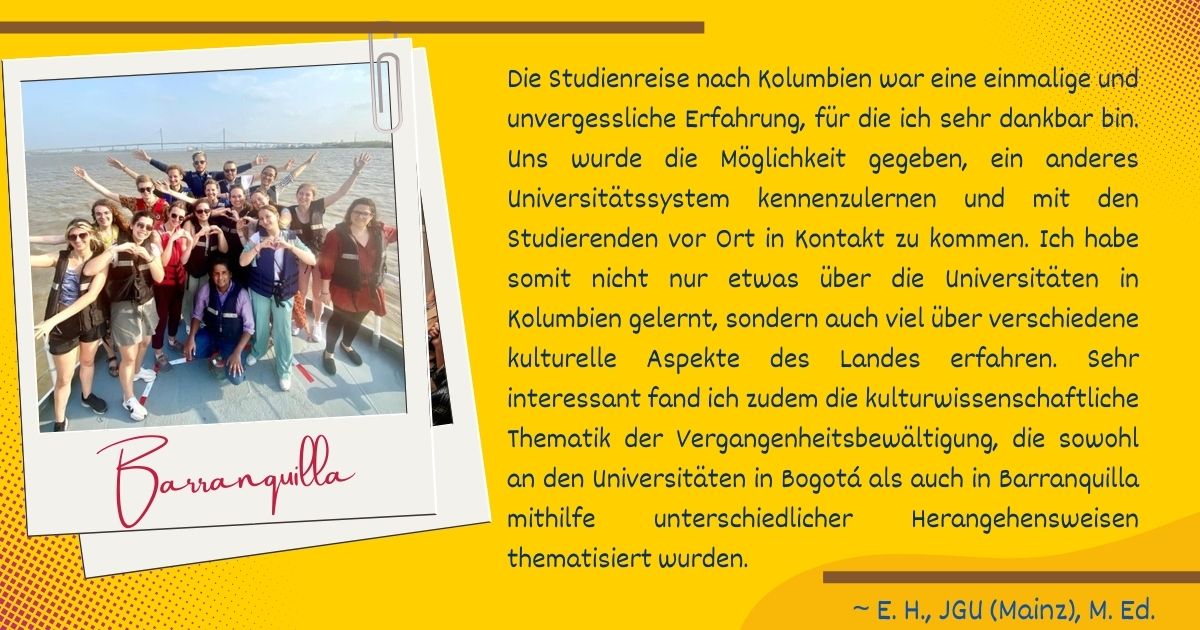 Hier finden Sie Erfahrungsberichte von Studierenden, die an der Studienfahrt teilgenommen haben. Die Fotos wurden von den Teilnehmenden aufgenommen und freundlicherweise bereitgestellt.